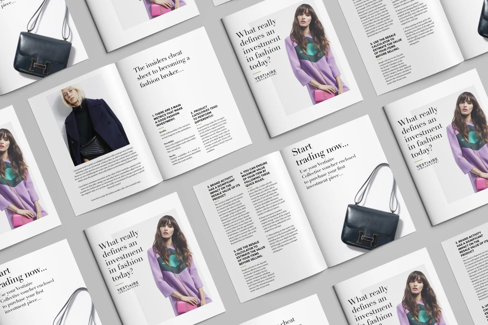 Aims to educate prospective buyers on how to successfully invest in luxury fashion. The materials consisted of a small booklet that served as a guide to the re-sale industry, a promotional brochure that highlighted the company's VIP Concierge Service for clients, and a takeaway gift voucher.